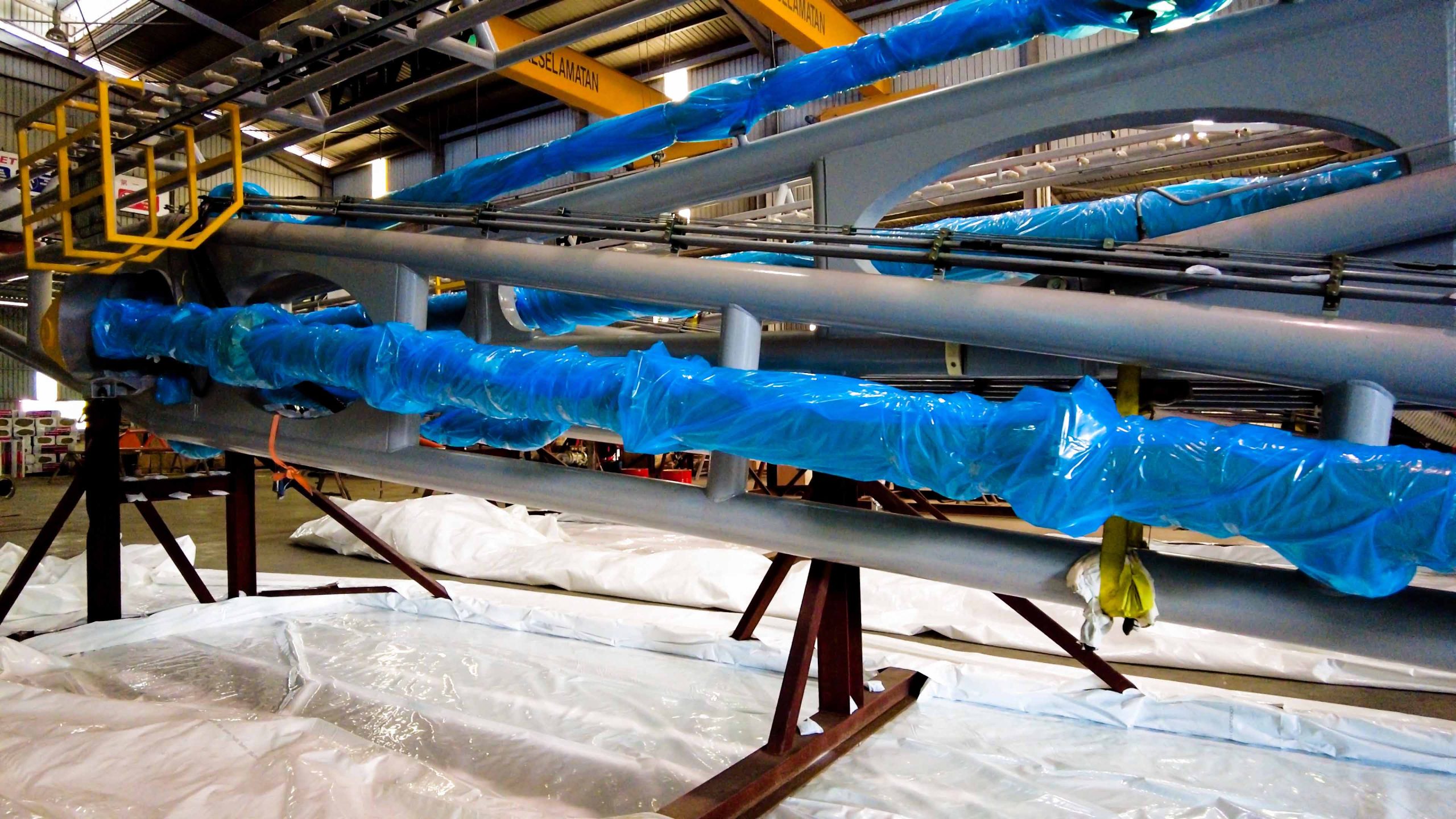 Albatross engineered a comprehensive shrink wrapping and anti-corrosion strategy, integrating precise technical calculations, advanced protective materials, and skilled manpower: